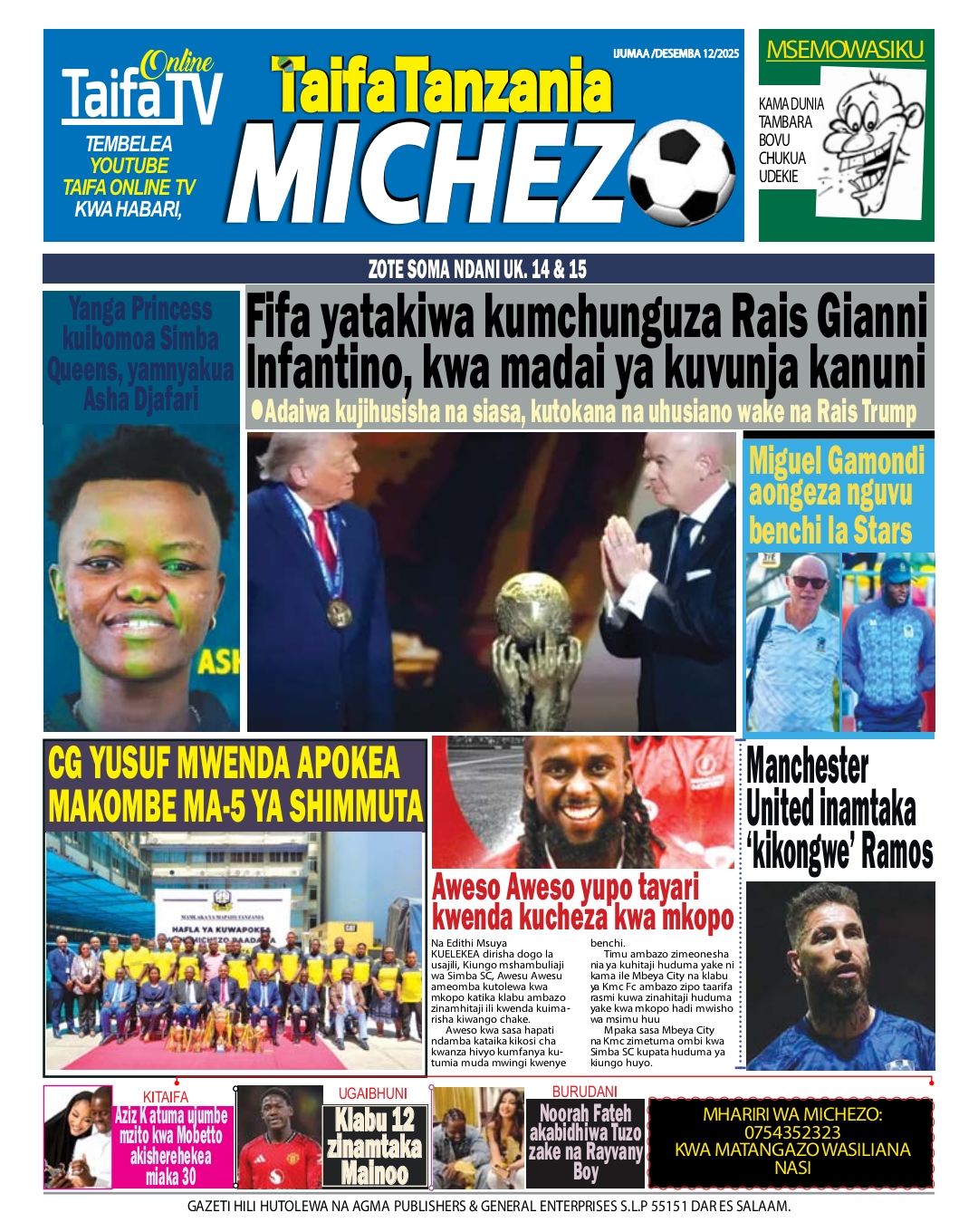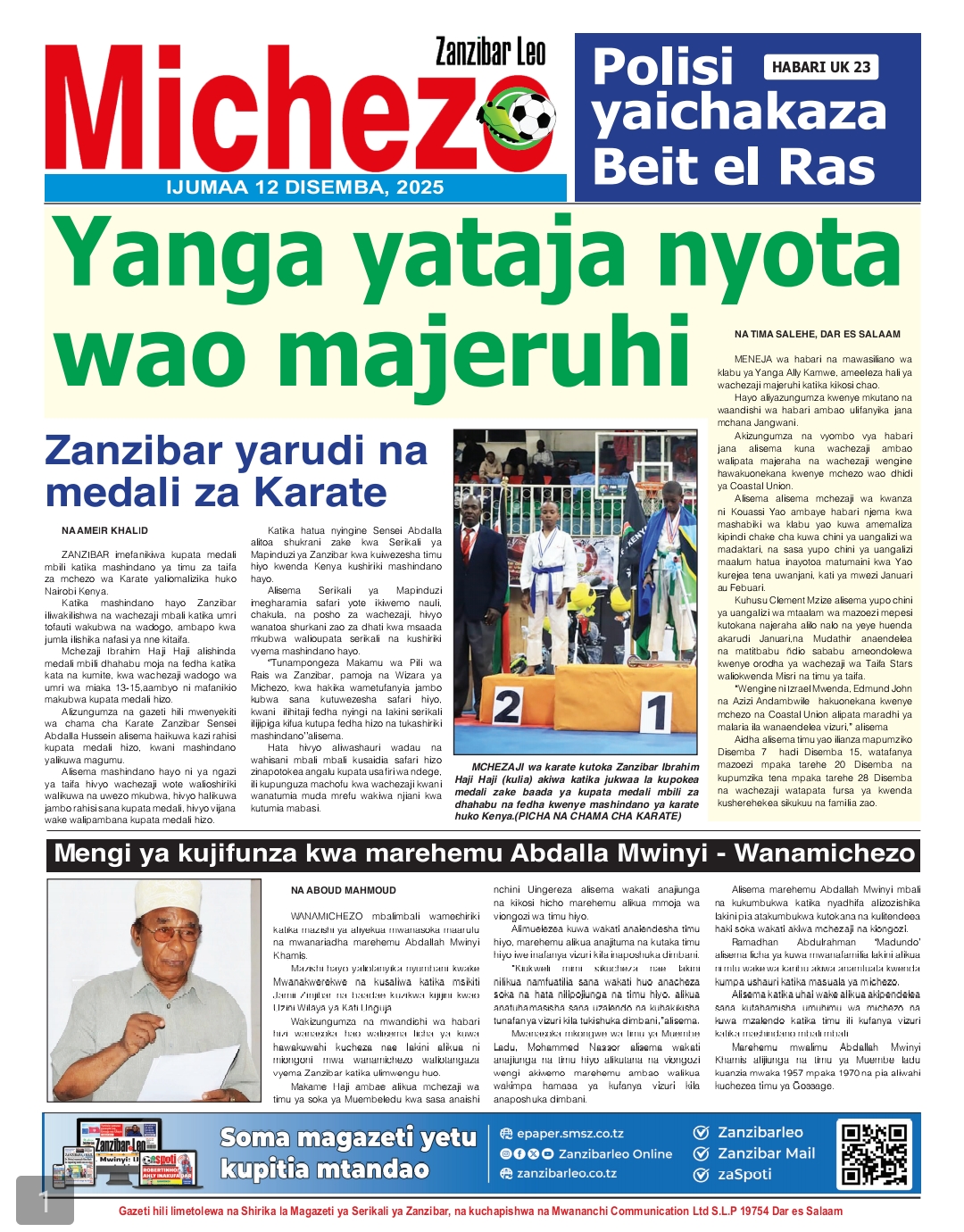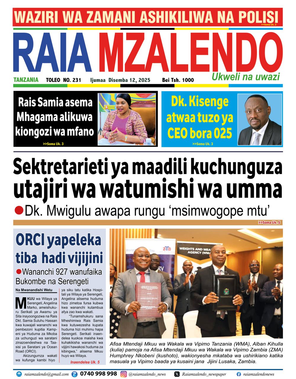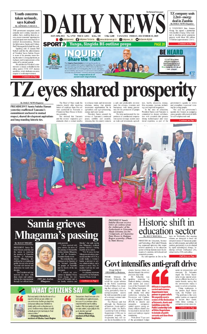 Home NEWSPAPERS HAYA HAPA MAGAZETI YA LEO IJUMAA DISEMBA 12_2025. HAYA HAPA MAGAZETI YA LEO IJUMAA DISEMBA 12_2025. By ENNA SIMION - December 12, 2025 FacebookTwitterTelegramWhatsAppCopy URL http://HAYA HAPA MAGAZETI YA LEO IJUMAA DISEMBA 12_2025.Thank you for reading this post, don't forget to subscribe!