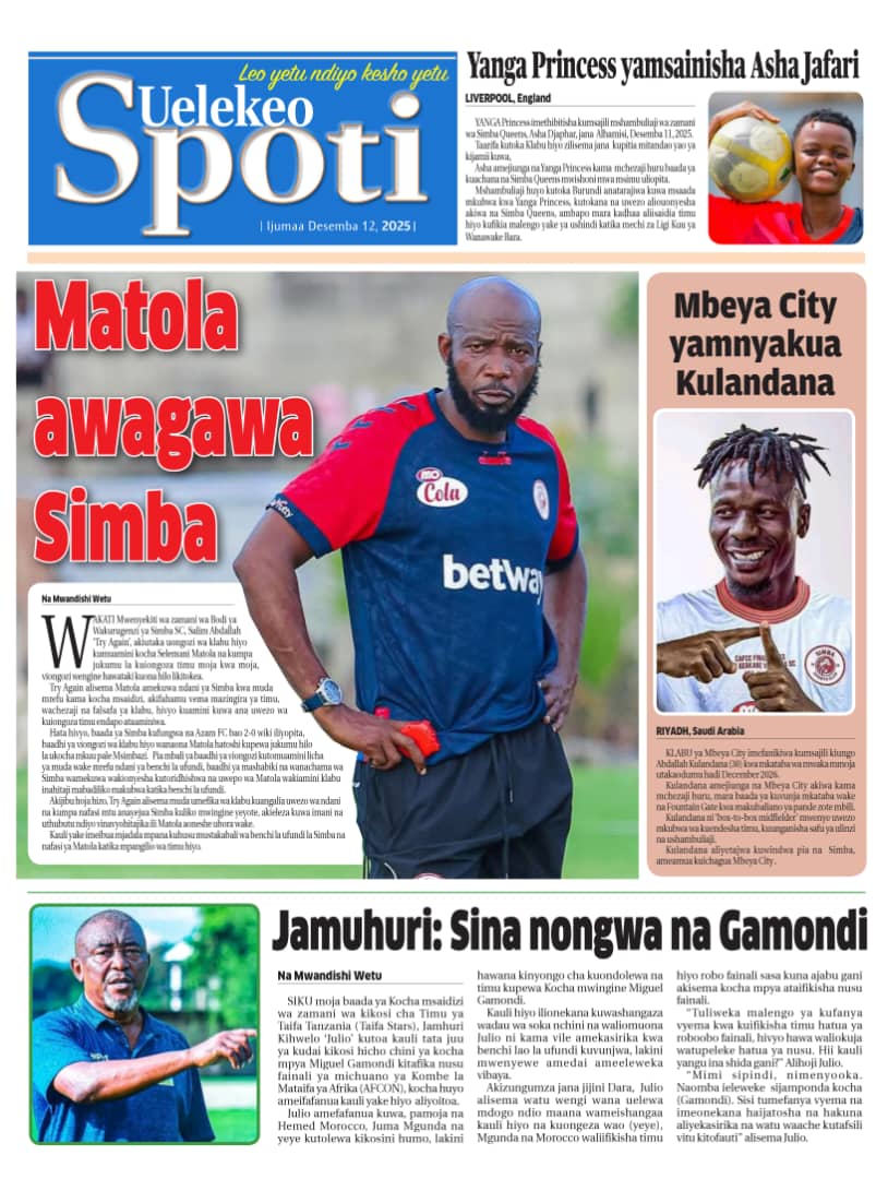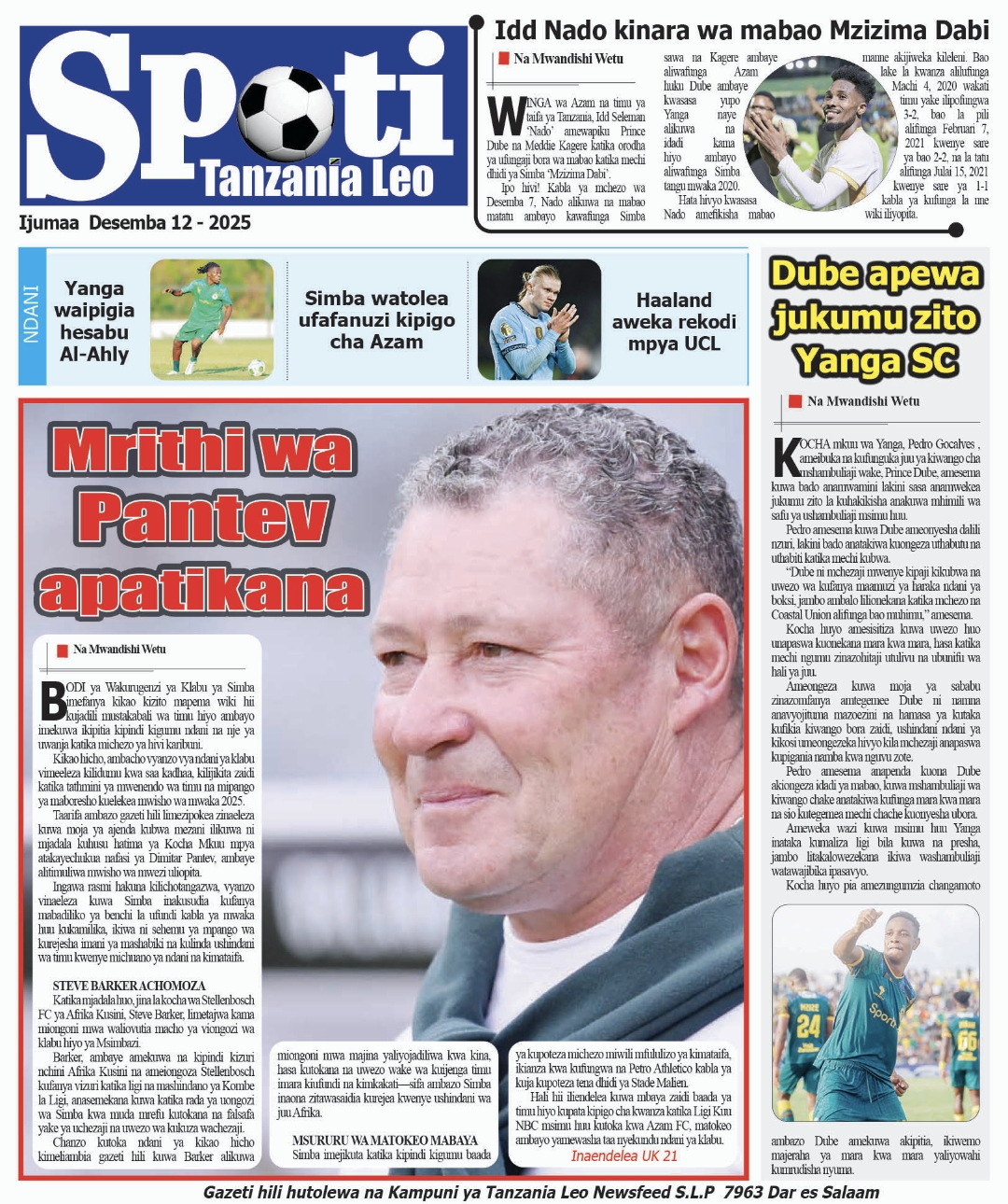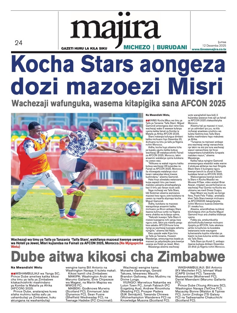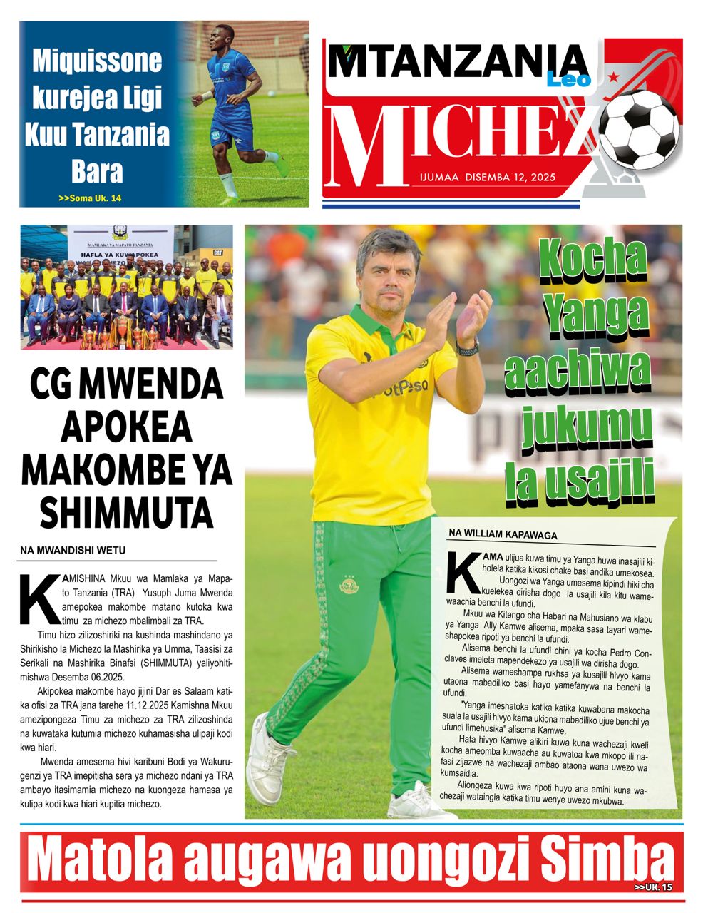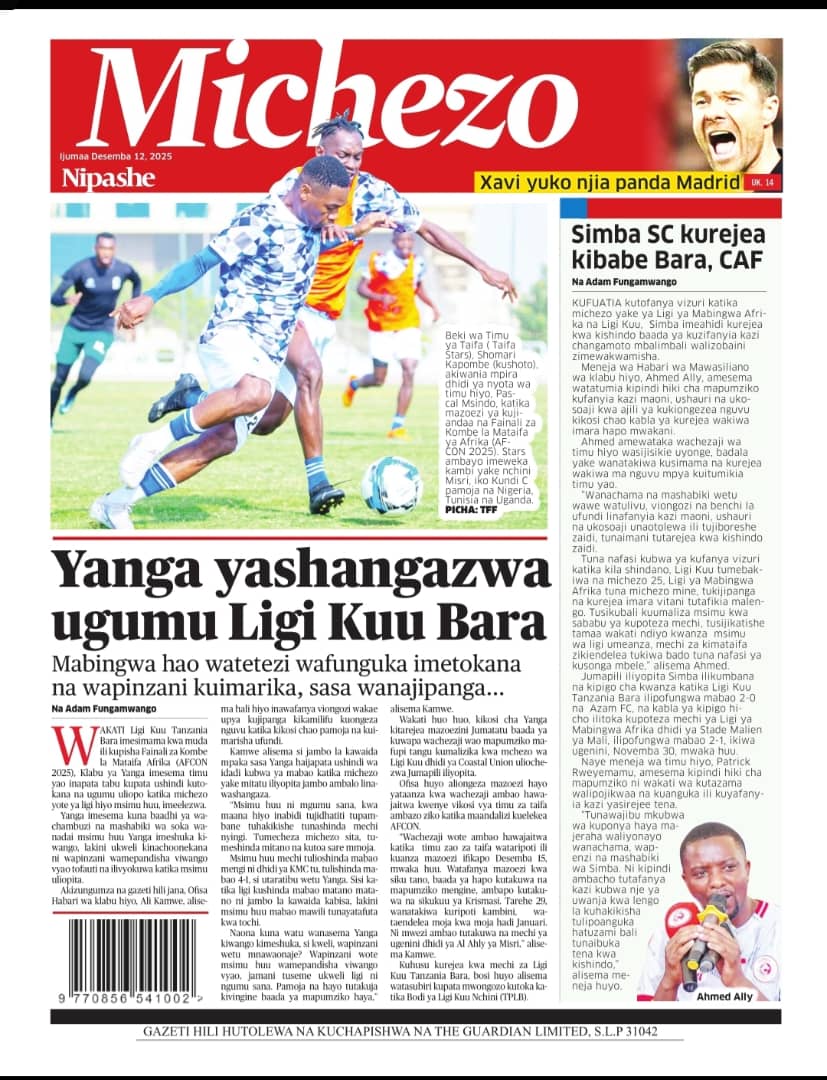 Home NEWSPAPERS HAYA HAPA MAGAZETI YA LEO IJUMAA DISEMBA 12_2025. HAYA HAPA MAGAZETI YA LEO IJUMAA DISEMBA 12_2025. By ENNA SIMION - December 12, 2025 FacebookTwitterTelegramWhatsAppCopy URL http://HAYA HAPA MAGAZETI YA LEO IJUMAA DISEMBA 12_2025.Thank you for reading this post, don't forget to subscribe!