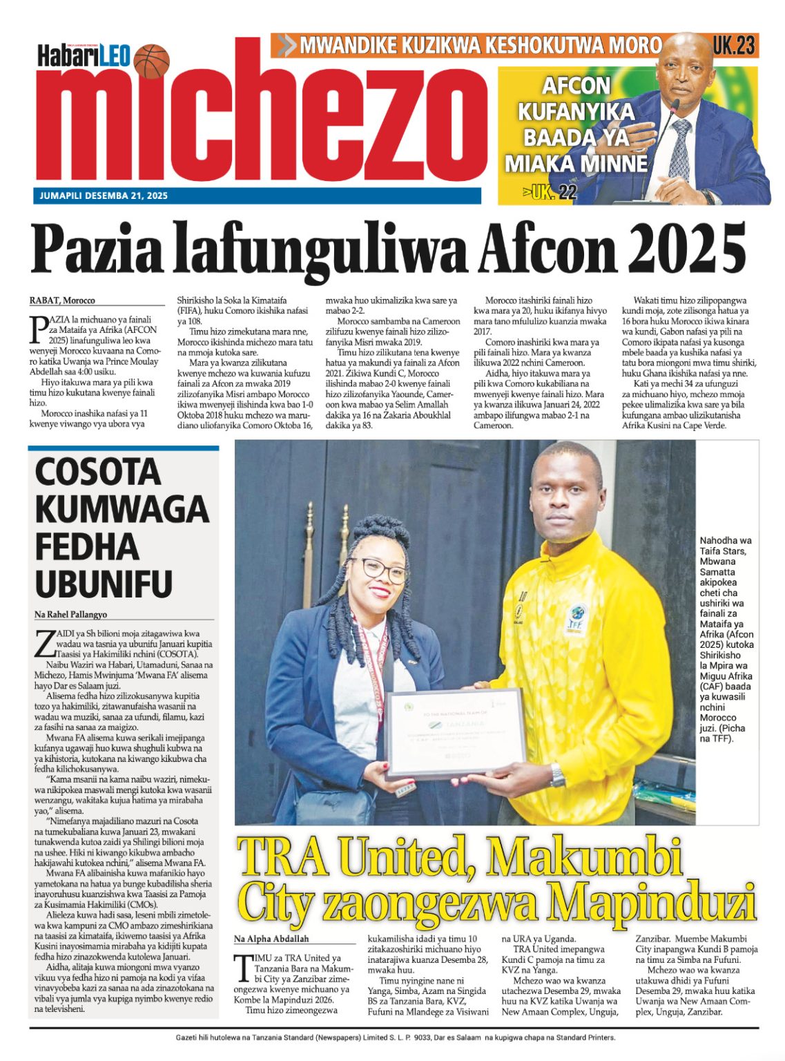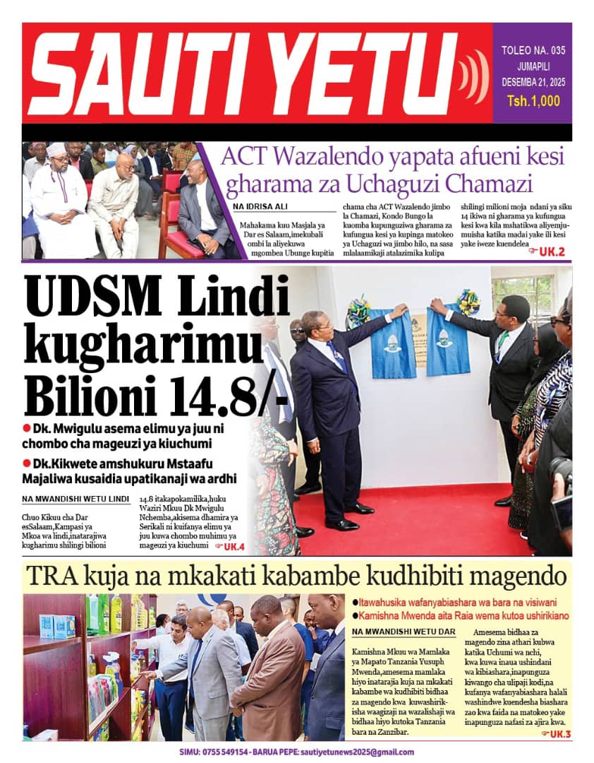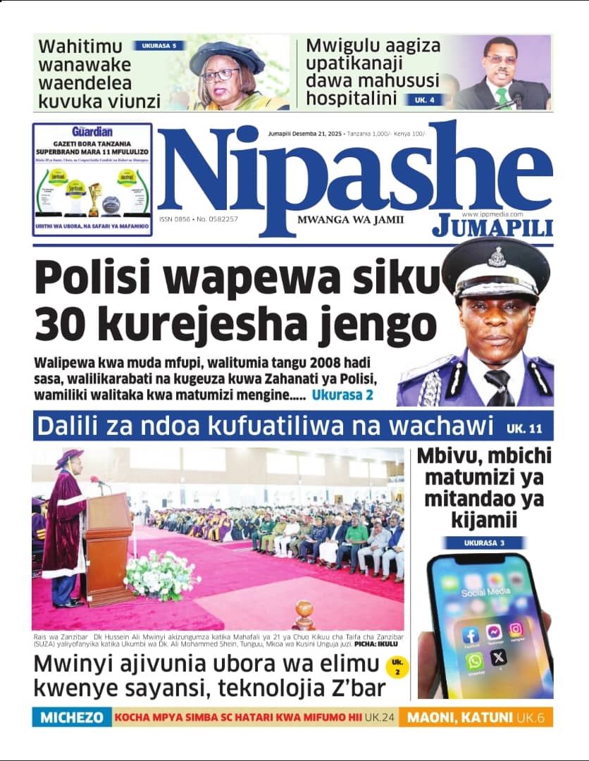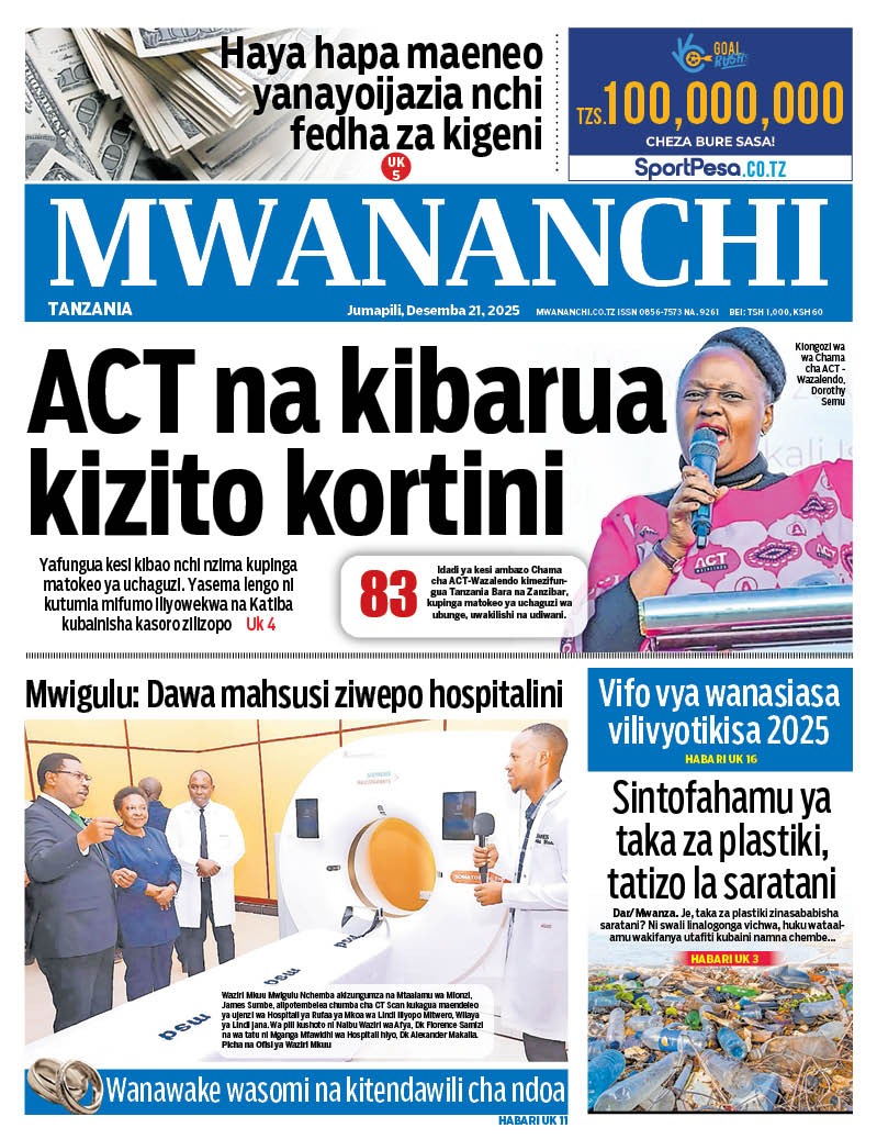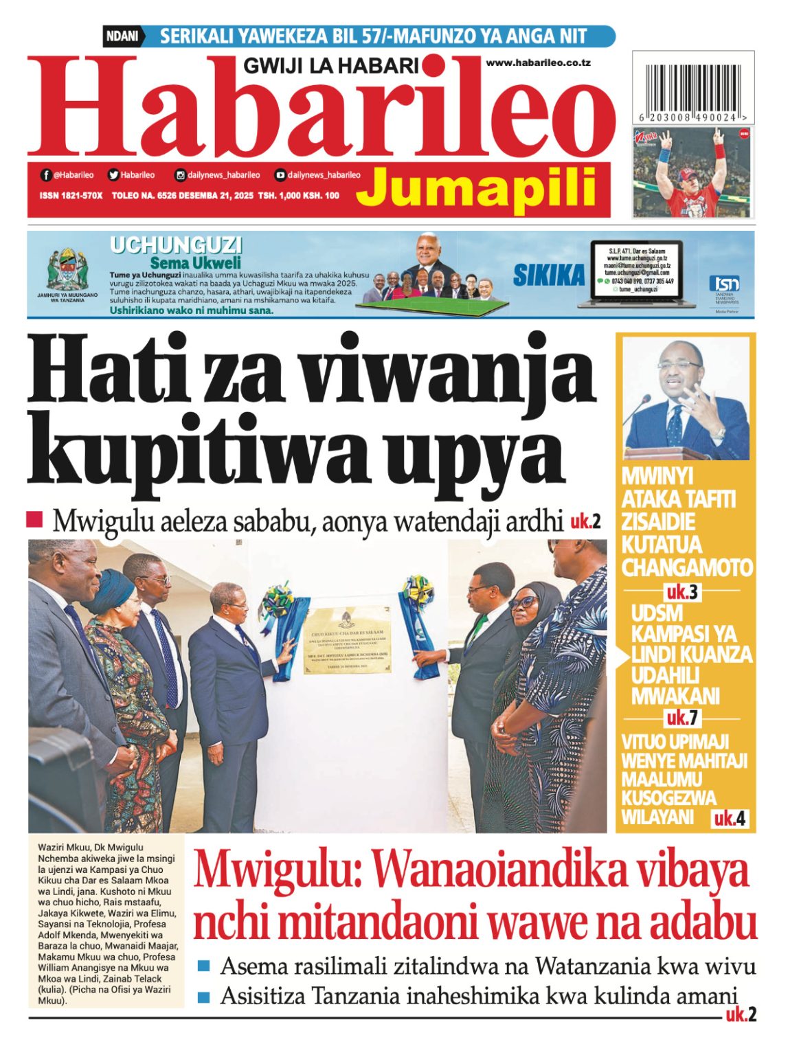 Home NEWSPAPERS HAYA HAPA MAGAZETI YA LEO JUMAPILI DISEMBA 21,2025 HAYA HAPA MAGAZETI YA LEO JUMAPILI DISEMBA 21,2025 By ENNA SIMION - December 21, 2025 FacebookTwitterTelegramWhatsAppCopy URL Thank you for reading this post, don't forget to subscribe! http://HAYA HAPA MAGAZETI YA LEO JUMAPILI DISEMBA 21,2025