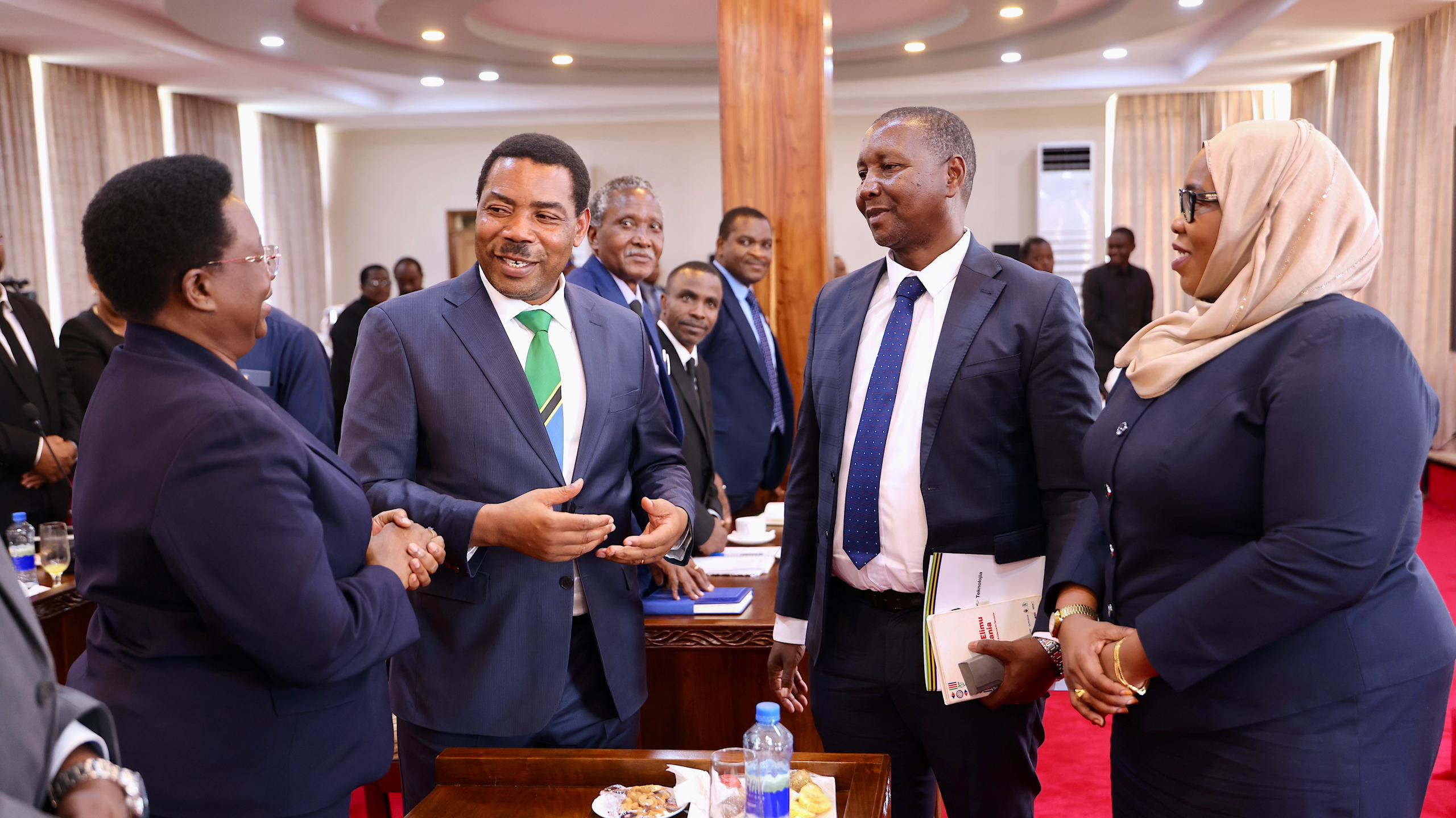 Waziri Mkuu, Dkt.Mwigulu Nchemba leo Januari 15, 2026 amefanya kikao cha kazi na Waziri wa Elimu , Sayansi na Teknolojia, Profesa Adolf Mkenda (wa pili kulia), Naibu Waziri wa Elimu , Sayansi na Teknolojia, Wanu Hafidh Ameir, pamoja na Timu ya Wataalam kutoka Wizara hiyo.Kikao hicho ambacho kimefanyika kwenye ukumbi wa Ofisi ya Waziri Mkuu, Mlimwa jijini Dodoma pamoja na mambo mengine wamejadili mikakati mbalimbali yenye lengo la kuendeleza sekta ya elimu nchini.Katika kikao hicho pia, Katibu Mkuu Wizara ya Elimu Sayansi na Teknolojia, Profesa Carolyne Nombo alishiriki.