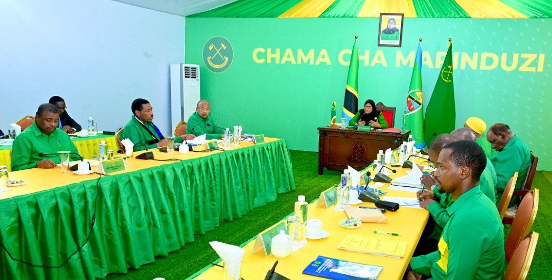 Mwenyekiti wa Chama cha Mapinduzi (CCM) na Rais wa Jamhuri ya Muungano wa Tanzania Ndugu. Dkt. Samia Suluhu Hassan akiongoza Kikao cha Kamati Kuu ya Halmashauri Kuu ya CCM kilichokutana Zanzibar tarehe 25 Januari, 2026.