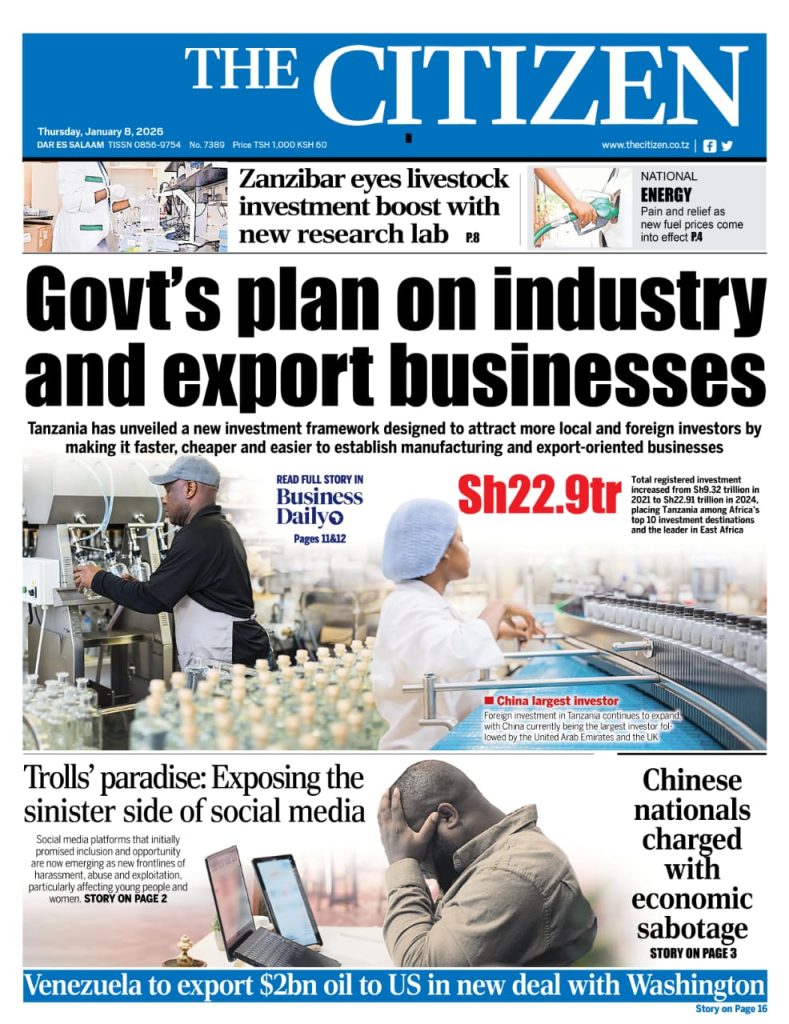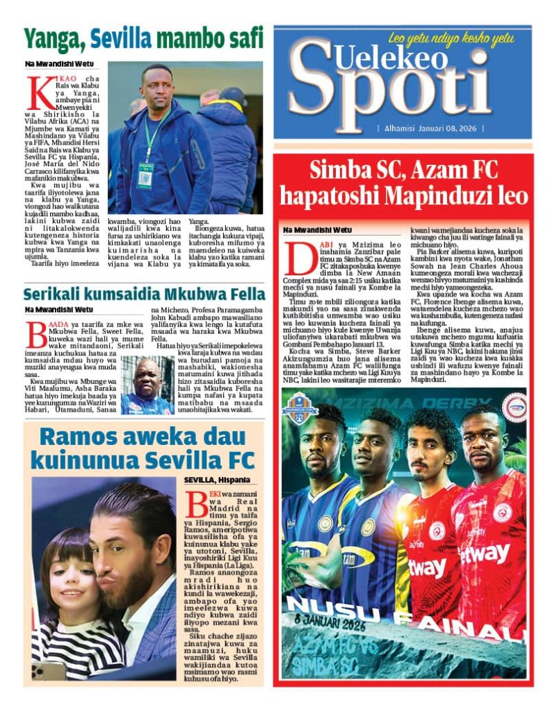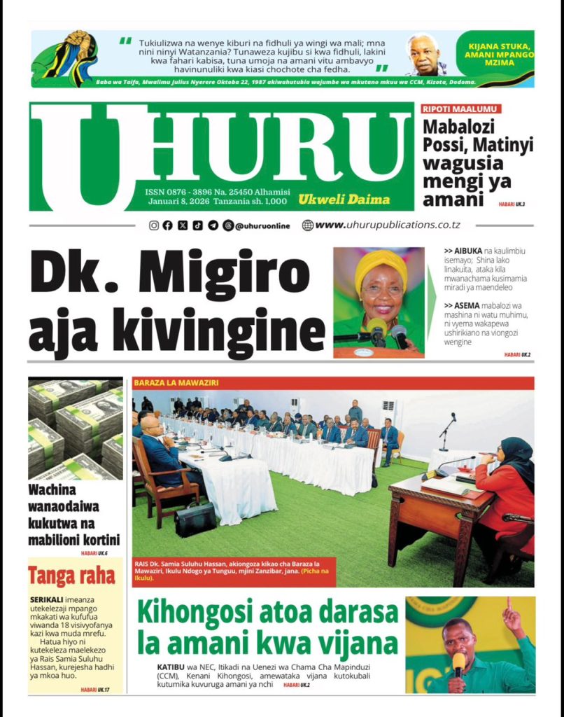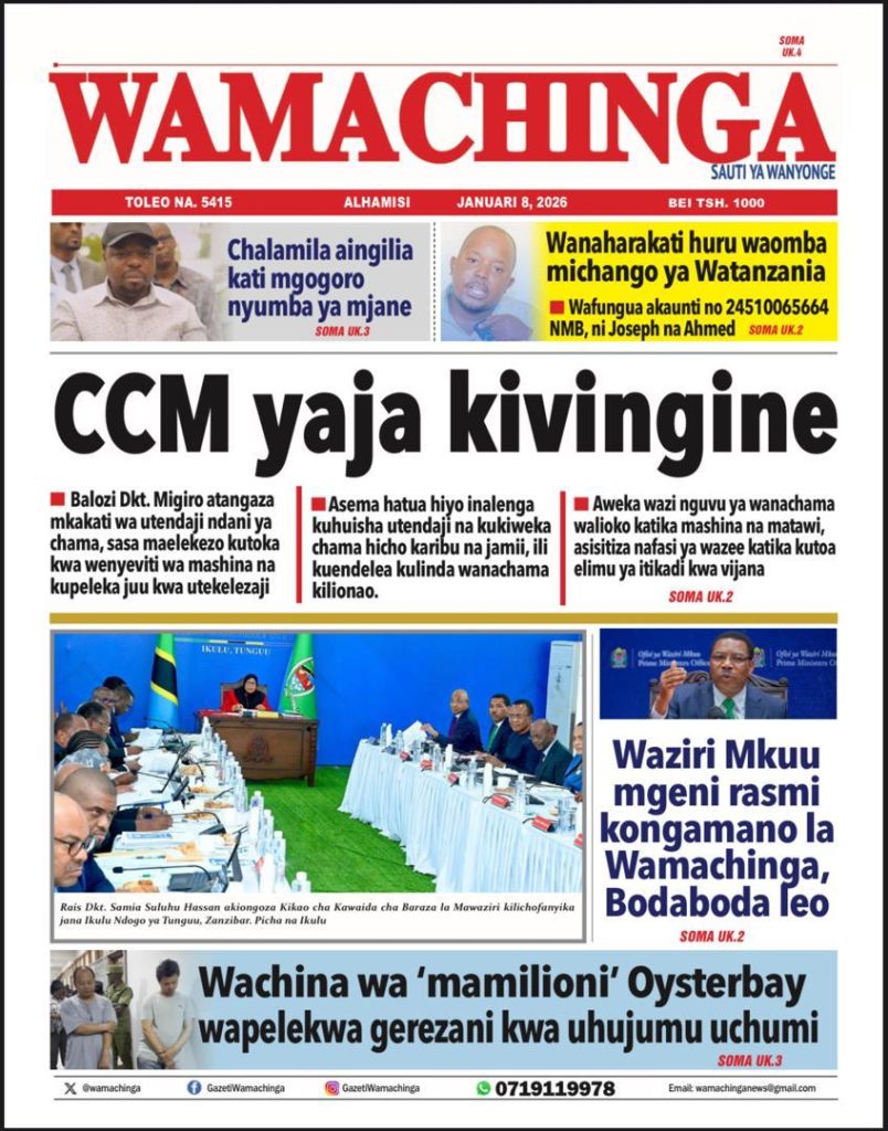 Home NEWSPAPERS SOMA MAGAZETI YA LEO JANUARI 08 – 2026 SOMA MAGAZETI YA LEO JANUARI 08 – 2026 By HUGHES DUGILO - January 8, 2026 FacebookTwitterTelegramWhatsAppCopy URL