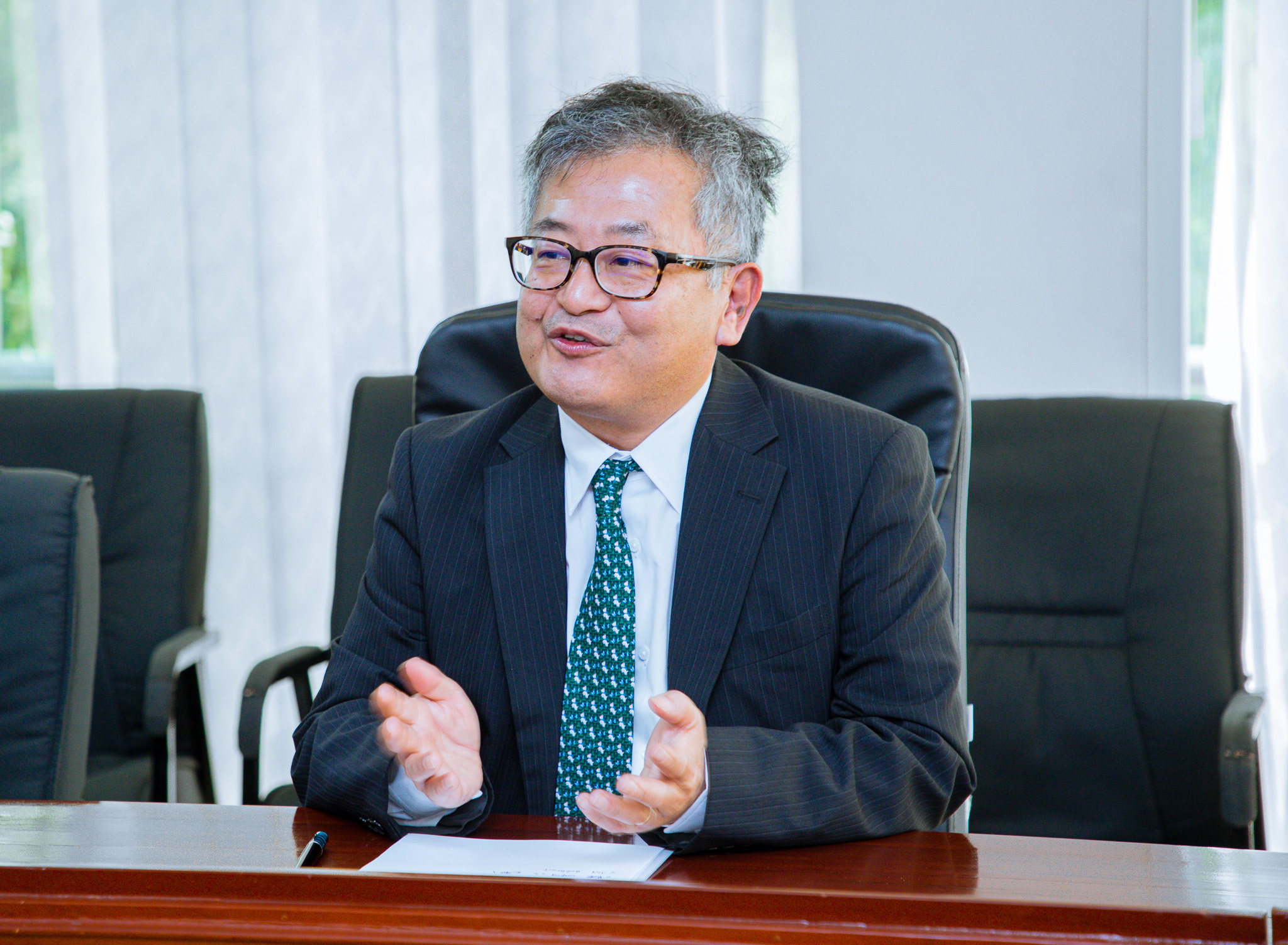 Balozi wa Japan nchini Tanzania, Mhe. Yoichi Mikami, akizungumza jambo wakati wa kikao chake na Waziri wa Fedha, Mhe. Balozi Khamis Mussa Omar (Mb) (hayupo pichani), alipofika kwa ajili ya kujitambulisha na kujadili masuala mbalimbali ya ushirikiano wa kiuchumi na maendeleo kati ya Tanzania na Japan, katika Ofisi ya Waziri wa Fedha, Treasury Square, jijini Dodoma.