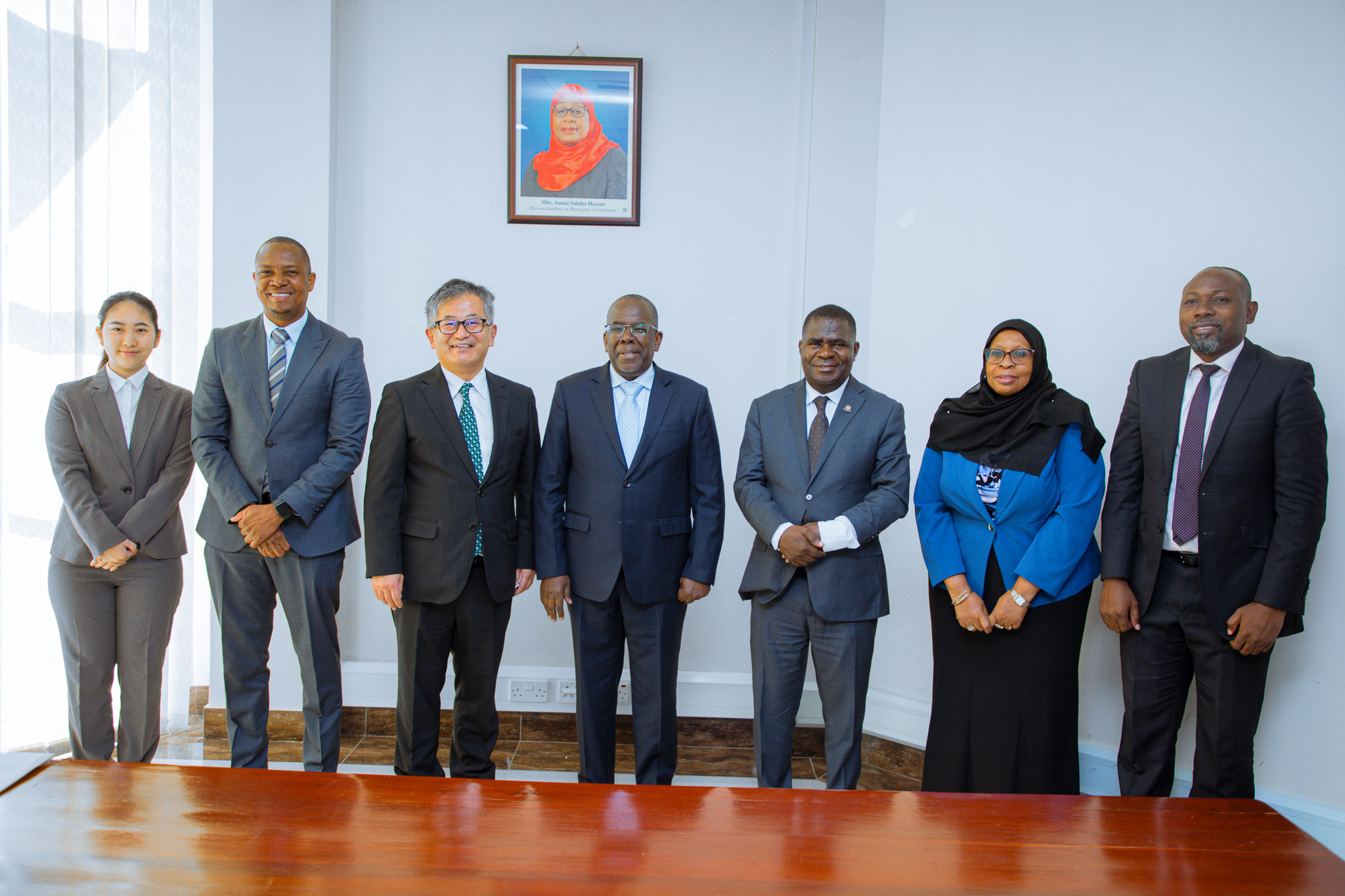 Waziri wa Fedha, Mhe. Balozi Khamis Mussa Omar (Mb) (Katikati), Balozi wa Japan nchini Tanzania, Mhe. Yoichi Mikami (wa tatu kushoto), Naibu Waziri wa Fedha, Mhe. Mhandisi Mshamu Ali Munde (Mb)(wa tatu kulia), Naibu Katibu Mkuu Wizara ya Fedha, Bi. Amina Khamis Shaaban (wa pili kulia), Kaimu Kamishna wa Idara ya Uchambuzi wa Sera, Wizara ya Fedha, Dkt. Remidius Ruhinduka (wa pili kushoto), Afisa wa Siasa, Utamaduni na Uhusiano wa Umma, ubalozi wa Japan nchini, Bi. Yoshino Shibata (kushoto) na Afisa kutoka Wizara ya Mambo ya Nje na Ushirikiano wa Afrika Mashariki, Bw. Frank Mhina (kulia), wakiwa katika picha ya pamoja, baada ya kikao cha Mhe. Balozi Omar na Mhe. Mikami, kilichofanyika katika ofisi za Wizara ya Fedha, Treasury Square jijini Dodoma