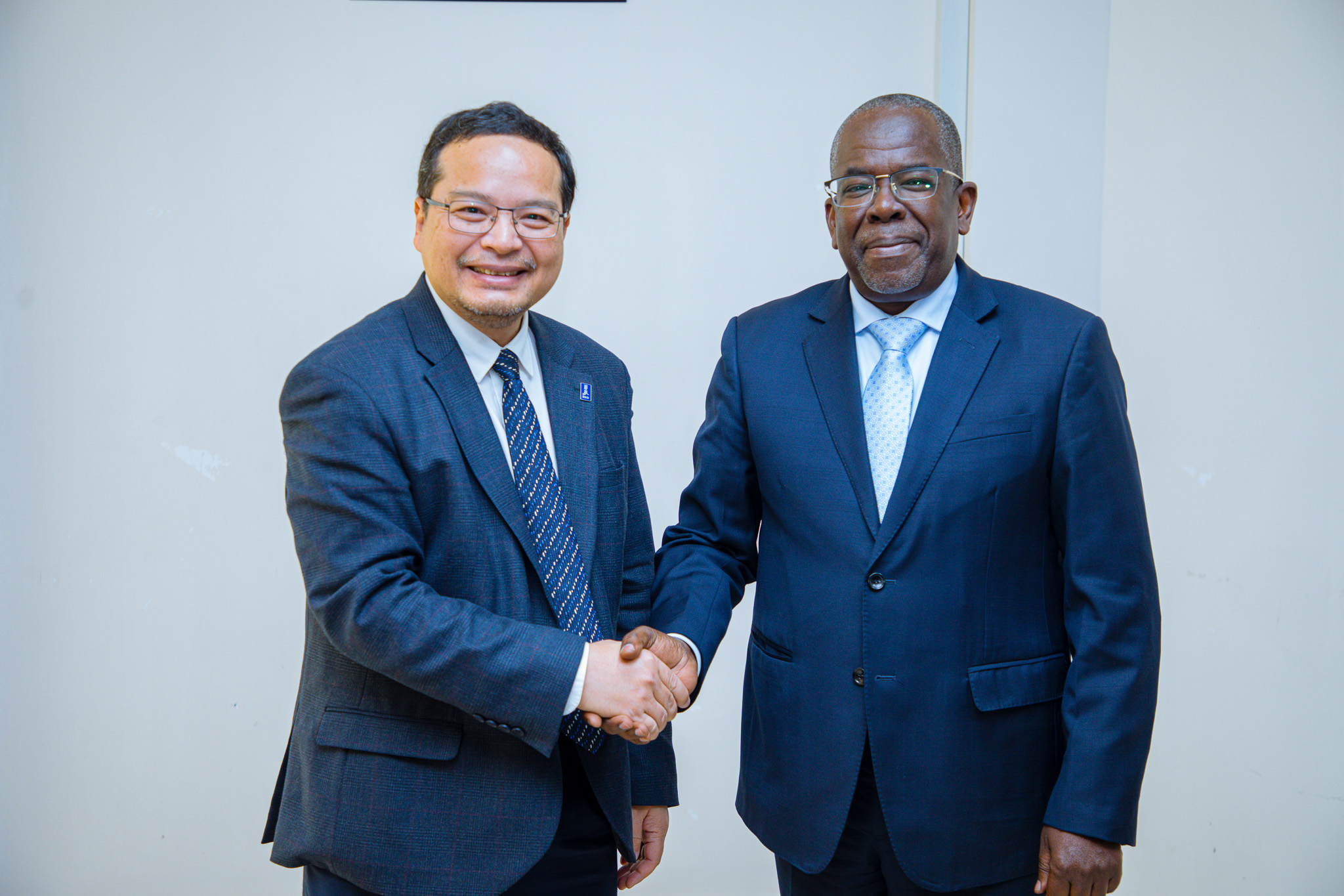 Waziri wa Fedha, Mhe. Balozi Khamis Mussa Omar (Mb) (kulia), akiagana na Mkurugenzi Mkazi wa Mfuko wa Kimataifa wa Maendeleo ya Kilimo (IFAD), Bw. Sakphouseth Meng, baada ya kukutana na kufanya mazungumzo katika ofisi za Wizara ya Fedha, Treasury Square jijini Dodoma, ambapo pamoja na mambo mengine Mhe. Balozi Omar, aliishukuru IFAD kwa mchango wake katika maendeleo ya kilimo nchini.