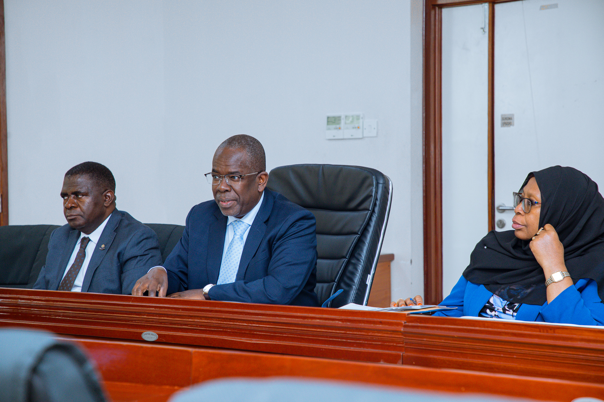 Waziri wa Fedha, Mhe. Balozi Khamis Mussa Omar (Mb) (katikati), akizungumza jambo wakati wa kikao chake na Mkurugenzi Mkazi wa Mfuko wa Kimataifa wa Maendeleo ya Kilimo (IFAD), Bw. Sakphouseth Meng (hayupo pichani), katika ofisi za Wizara ya Fedha, Treasury Square jijini Dodoma, ambacho kilijadili masuala mbalimbali ya ushirikiano katika kukuza maendeleo ya Sekta ya kilimo kwa ujumla wake na kwa upande wa kuongeza uzalishaji na tija katika uzalishaji. Wengine katika picha ni Naibu Waziri wa Fedha, Mhe. Mhandisi Mshamu Ali Munde (Mb)(Kushoto) na Naibu Katibu Mkuu Wizara ya Fedha, Bi. Amina Khamis Shaaban (Kulia).