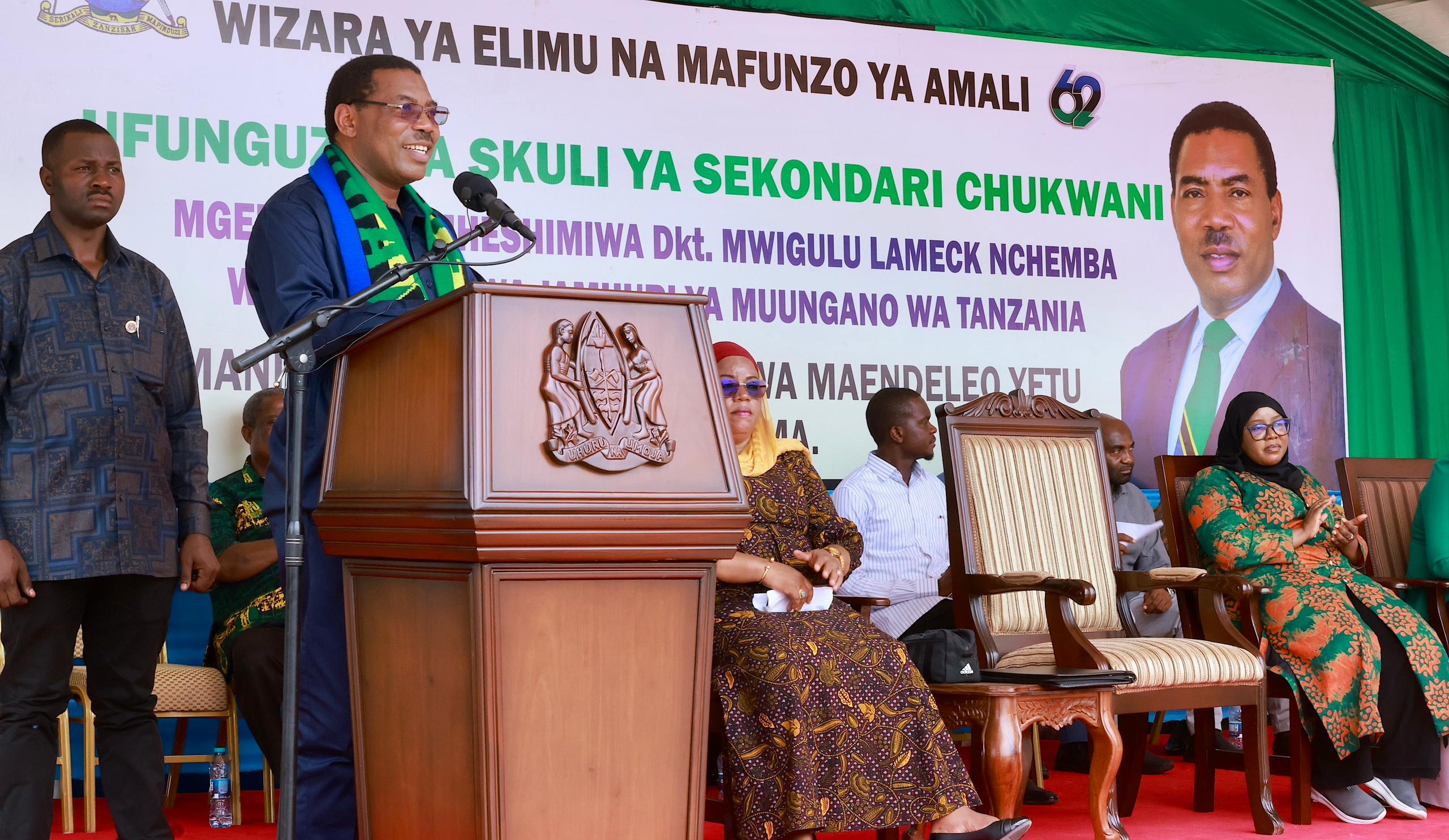 “Ujenzi wa Skuli hii ya Sekondari ya Chukwani ni mwendelezo wa azma ya Serikali ya kujenga skuli za kisasa zinazokidhi mahitaji ya mtaala mpya. Skuli hii ninayofungua leo imejengwa kwa viwango vya kisasa, ikiwa na Maabara za Sayansi na Kompyuta, Maktaba na Vyumba vya Madarasa vinavyowezesha matumizi ya Teknolojia ya Habari na Mawasiliano (TEHAMA) katika kufundishia na kujifunzia.”